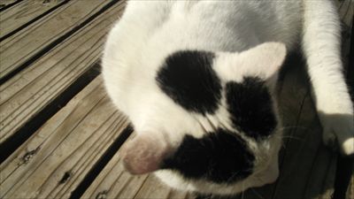 直吉を出たところのベランダでひなたぼっこしていた猫です(笑)